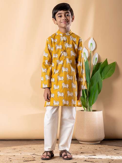 • Make your boy look stylish and confident in Readiprint brands in yellow kurtas and kurta sets in a variety of designs to choose from.