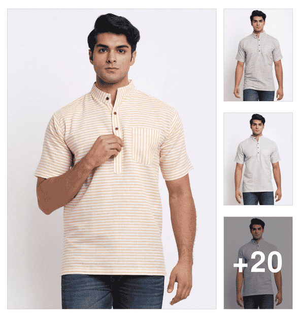 men self design cotton short kurta