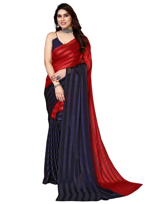 Elevate your ethnic charm with this stunning Bollywood Satin Striped Saree. Crafted from soft and lustrous satin fabric, this saree features elegant striped patterns that add a modern touch to its traditional appeal. Inspired by glamorous Bollywood fashion, it's perfect for festive occasions, parties, weddings, and special events.This saree comes with a matching unstitched blouse piece, allowing you to customize it to your style. The smooth satin drape ensures a graceful fall and all-day comfort, making you the center of attention wherever you go.