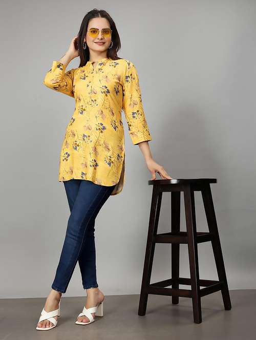 women yellow mandarin neck straight kurti - 20962530 -  Standard Image - 1 women yellow mandarin neck straight kurti - 20962530 -  Zoom Image - 1